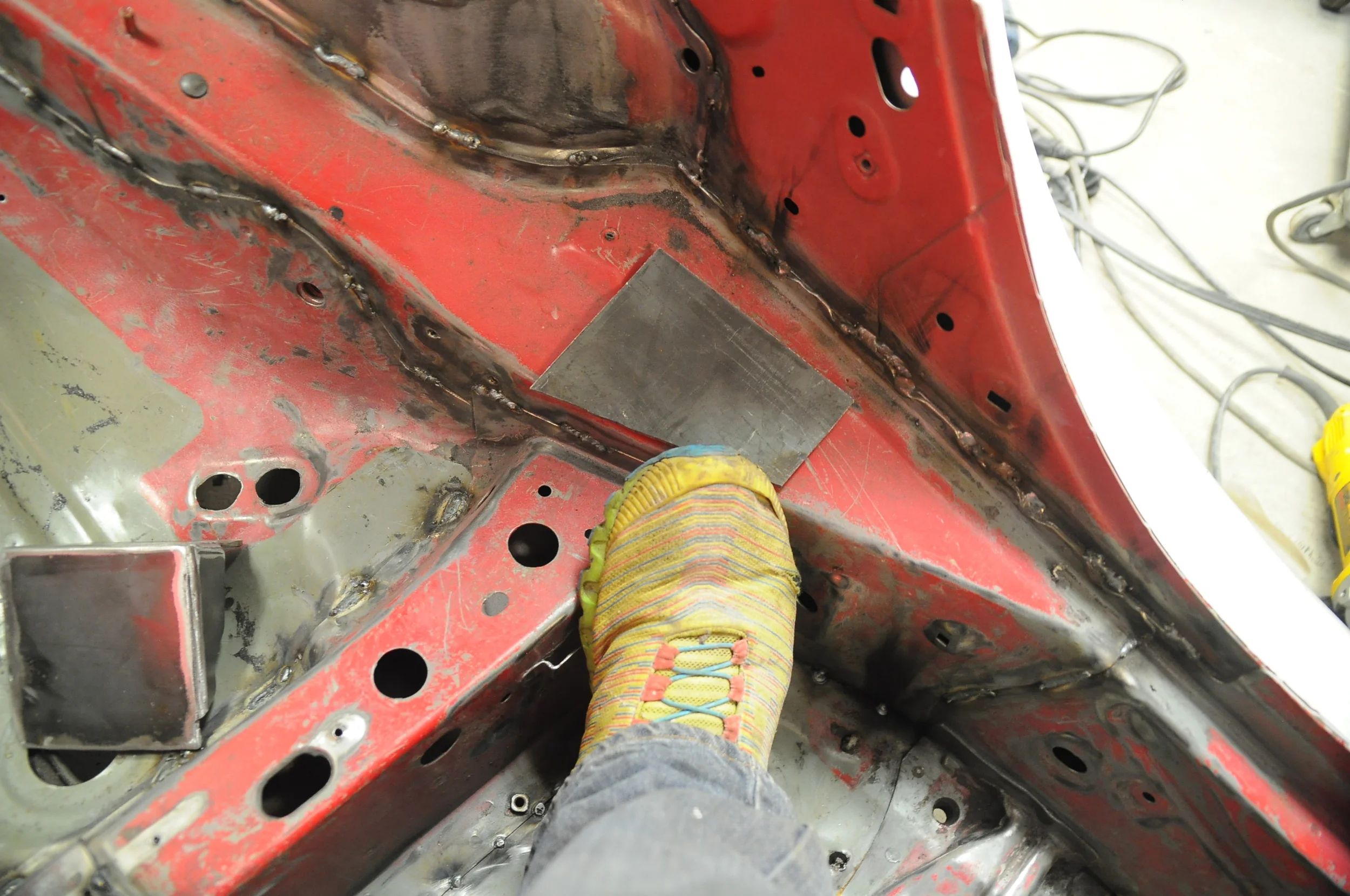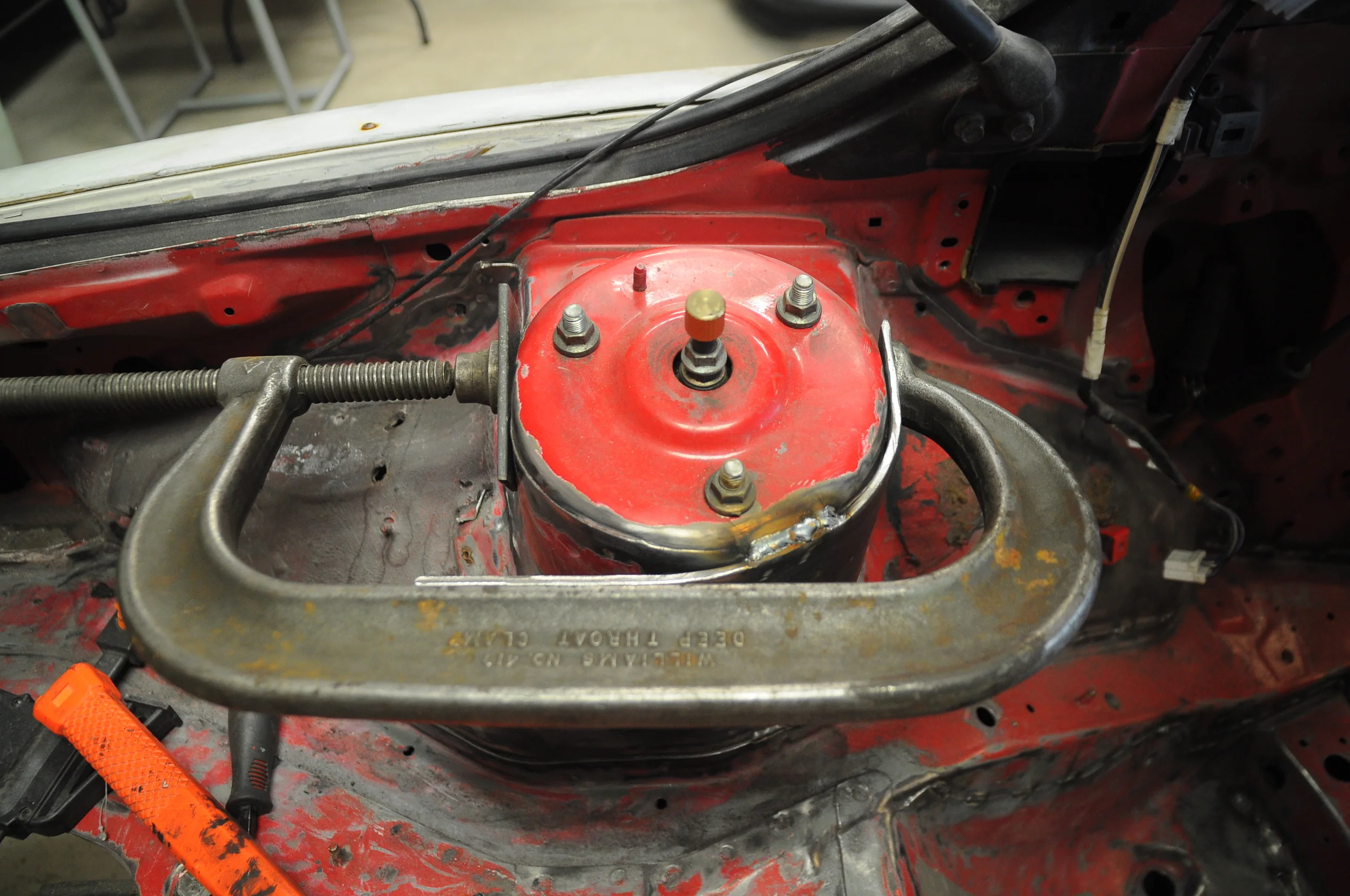 The rear strut mounting points were quiet a PITA. This was actually my second attempts as I originally started out welding one side of the plate then beginning to wrap it around - this resulted in a crooked plate. I cut it off and welded it from the center then bent it outwards. Some heat would have helped, I was lazy so I just used a dead blow hammer to massage a curve into it. Once it had shape, and after I was out of breath with a burning for arm, I got smart and whipped out my giant C-clamp. made life a hella lot easier! Tack ends, repeat, fully weld.