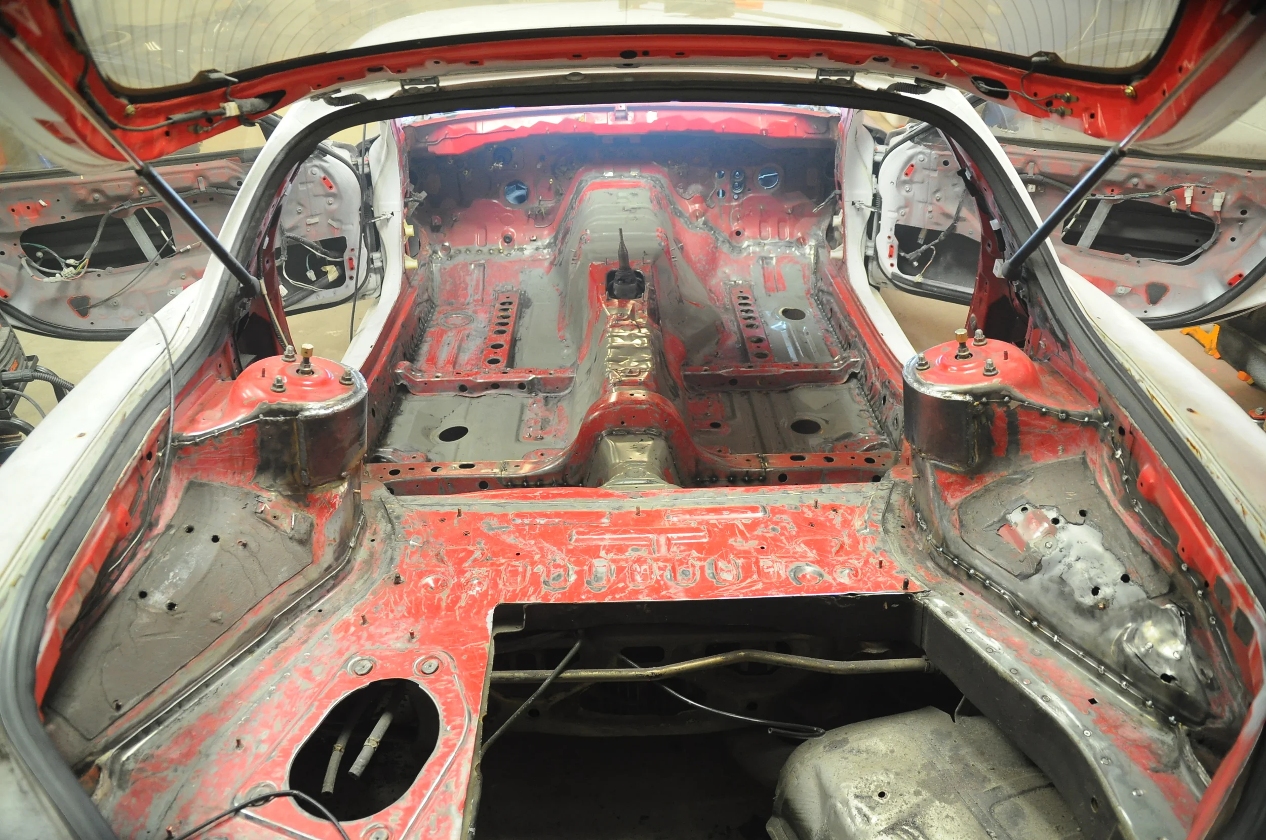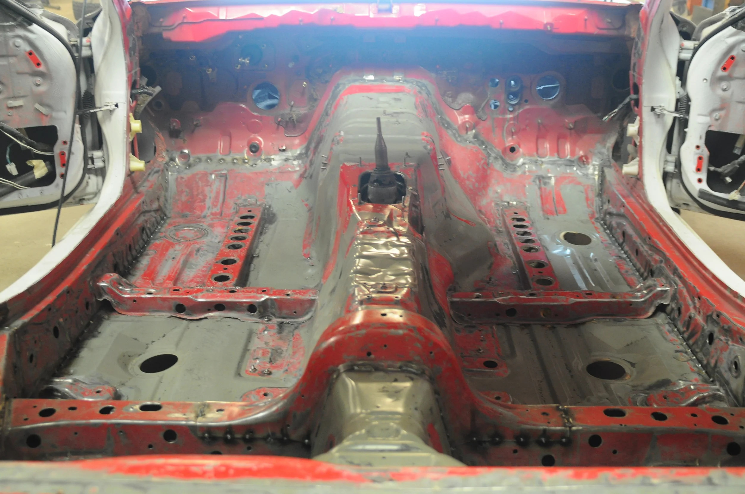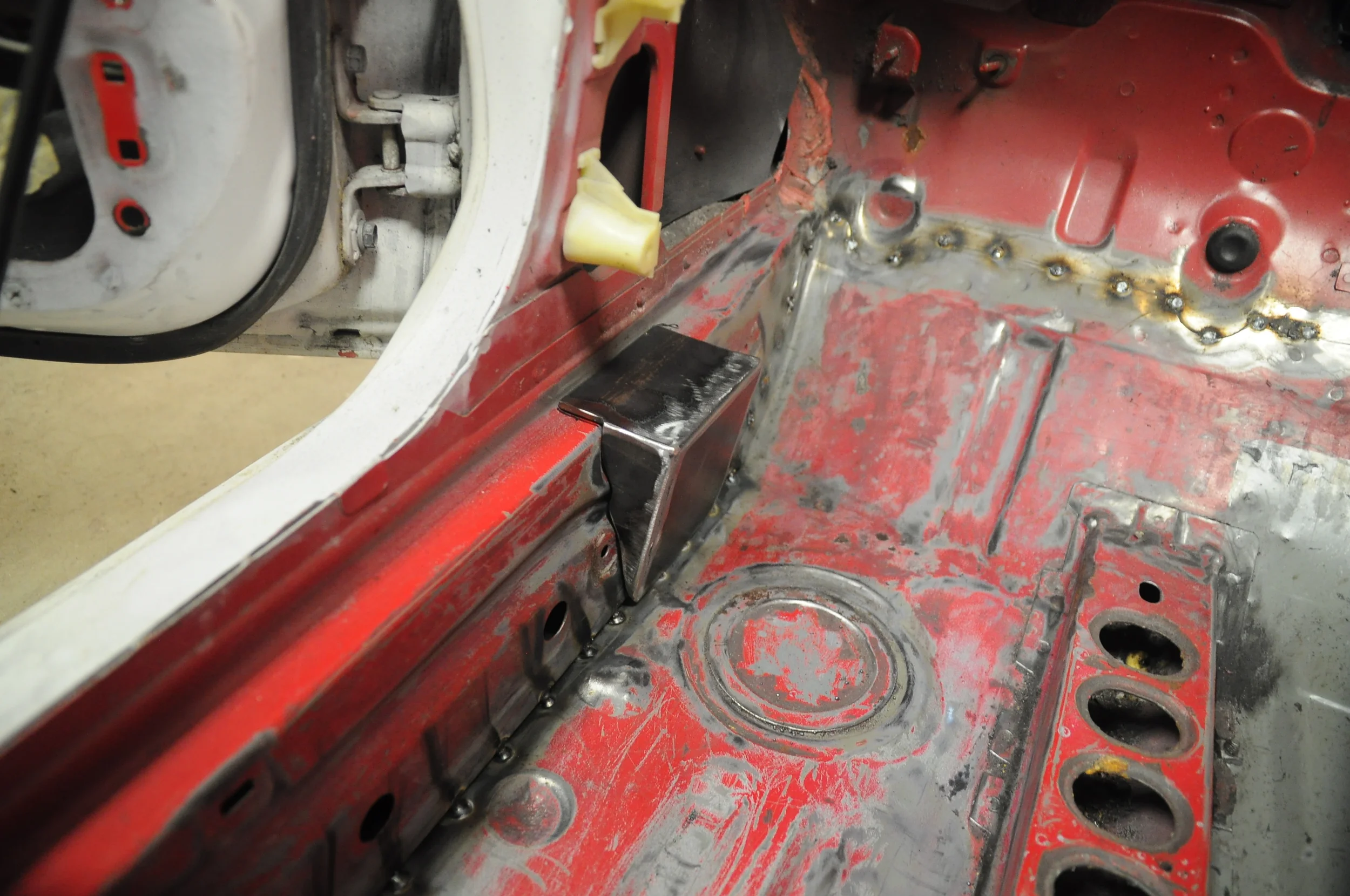 So more progress on the chassis and cage was made! I finally got 95% of the interior all stitch welded up. What. a. pain. in. the. ass. that. was. The Chassis prep was a freaking nightmare. Not only did I wire wheel the paint and primer off to bare metal, I cleaned the surface with acetone/brake cleaner (tried both as recommended by friends who built quiet a few cages) and still had some contaminated welds. I would never do this again unless the chassis was acid dipped or media blasted. If you're planning on doing this, think long and hard, its by far the most tedious thing I've done thus far.