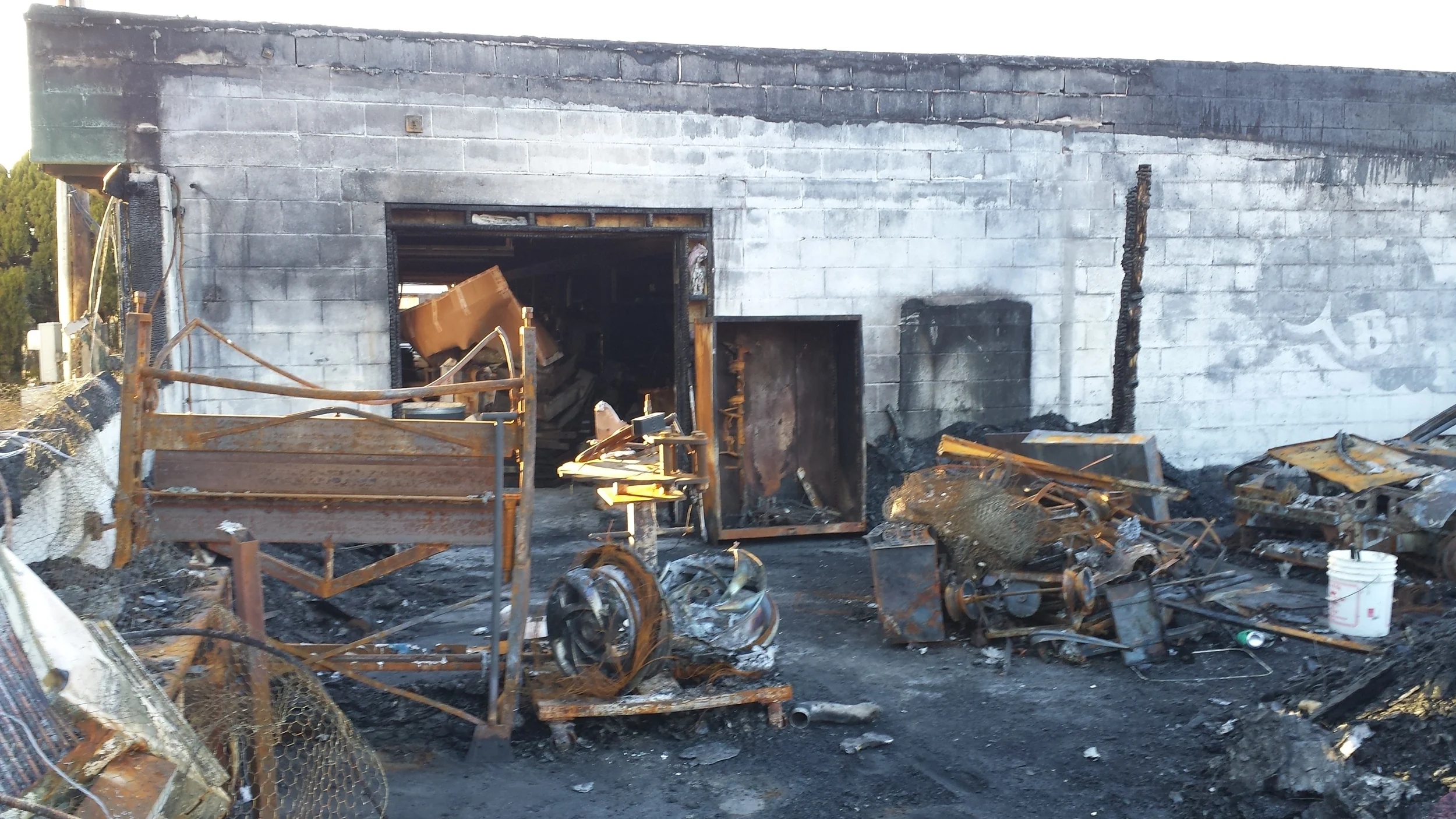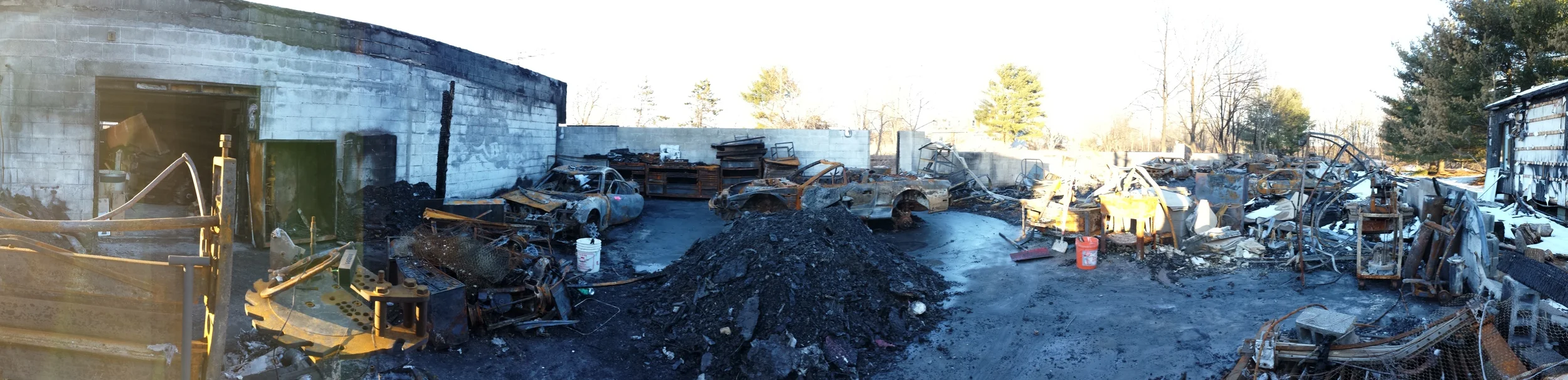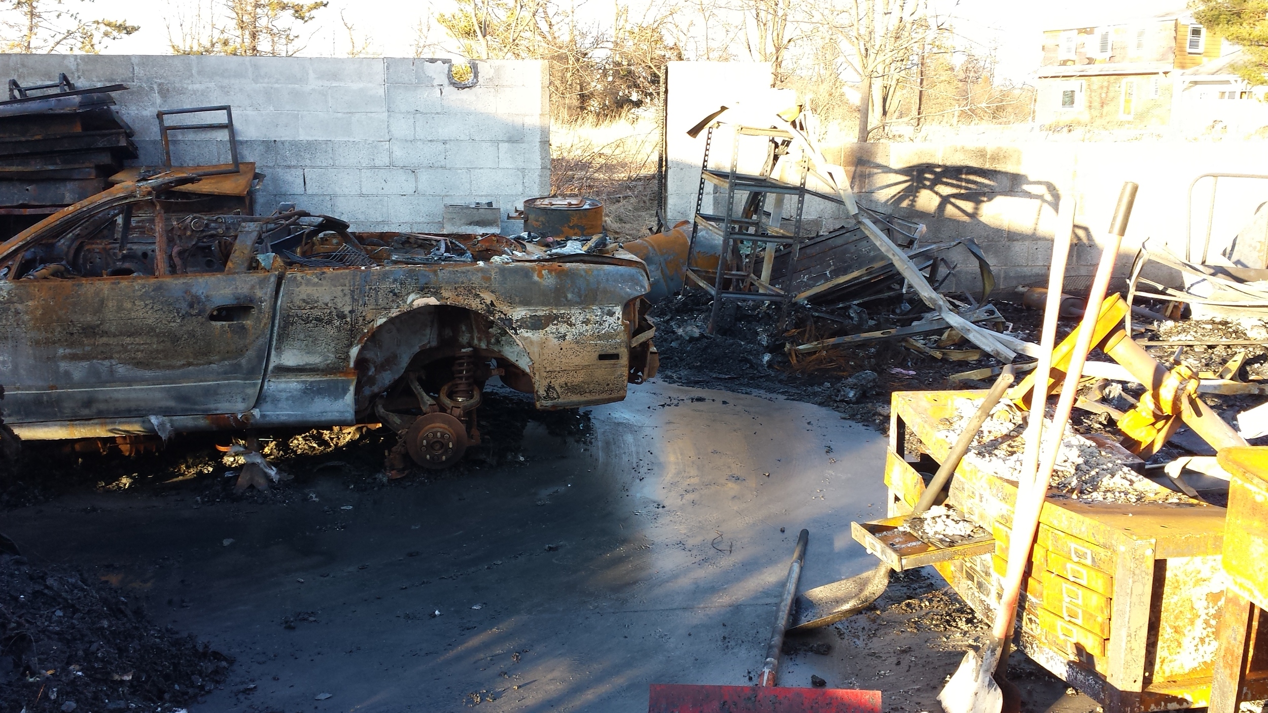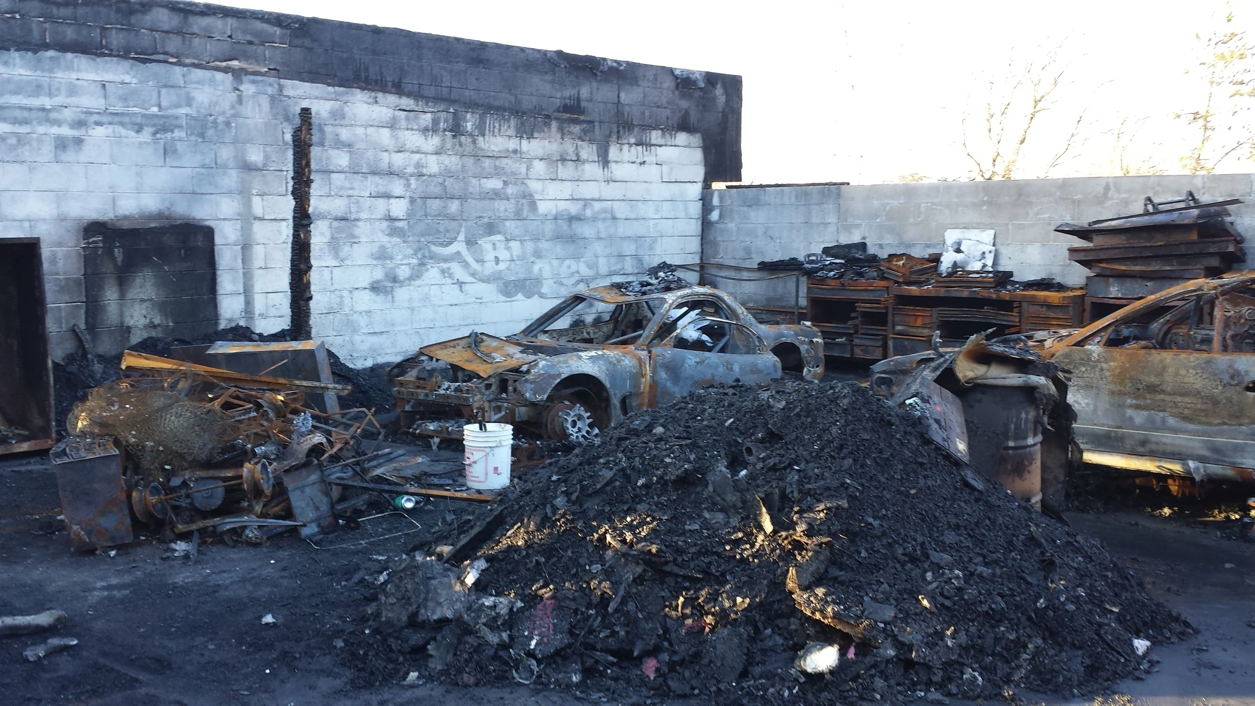 What some of you may not have known is there was also a mobile office trailer in front of the building which caught fire as well. I assume when the roof caved in and blew out the wall, the backside ignited. It's in pretty rough condition as well but will be tackled much later on.