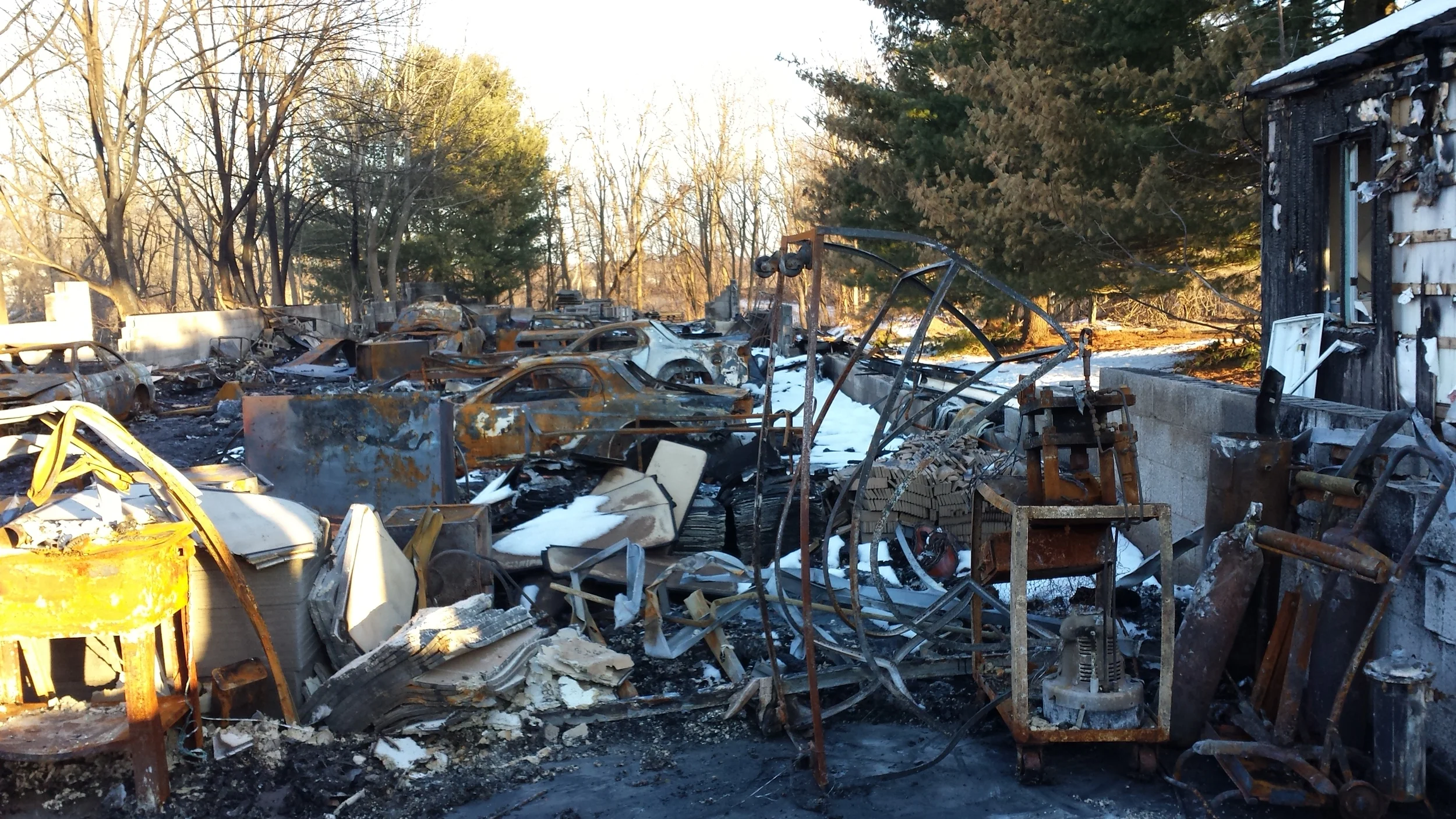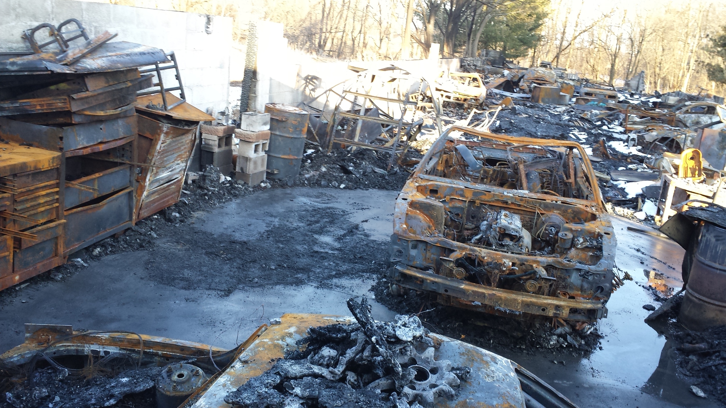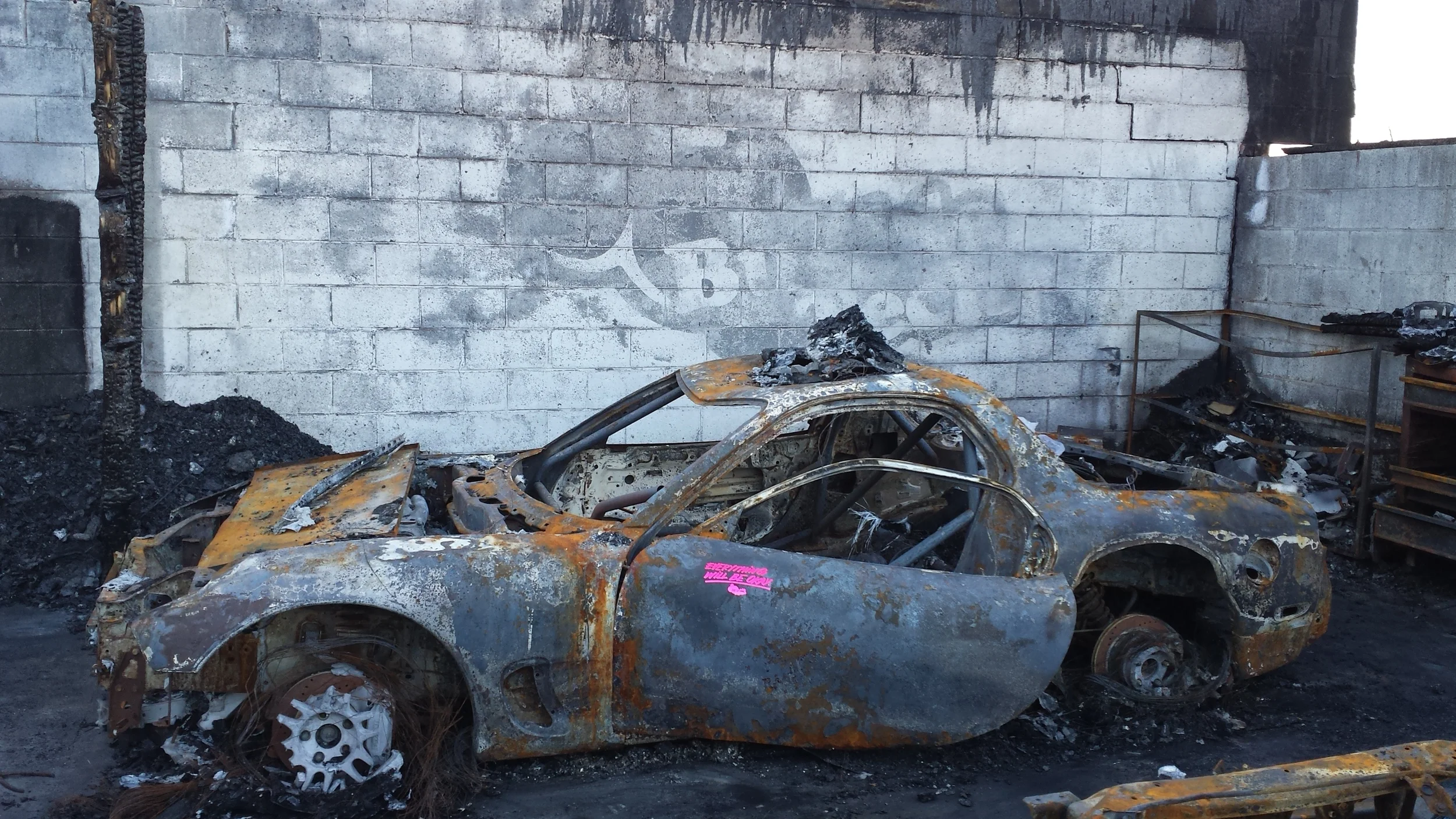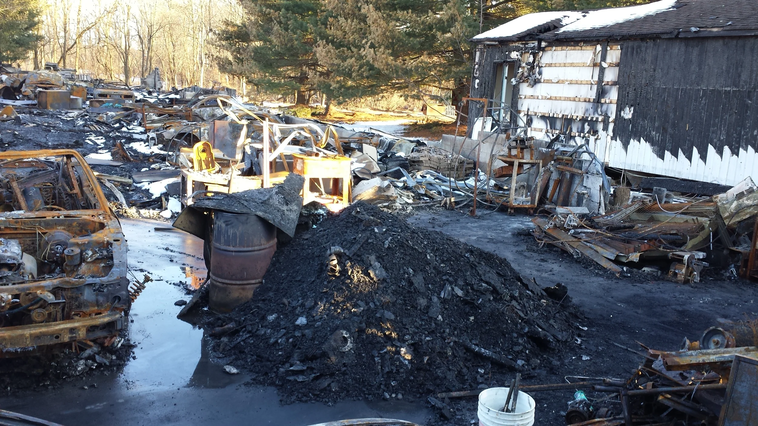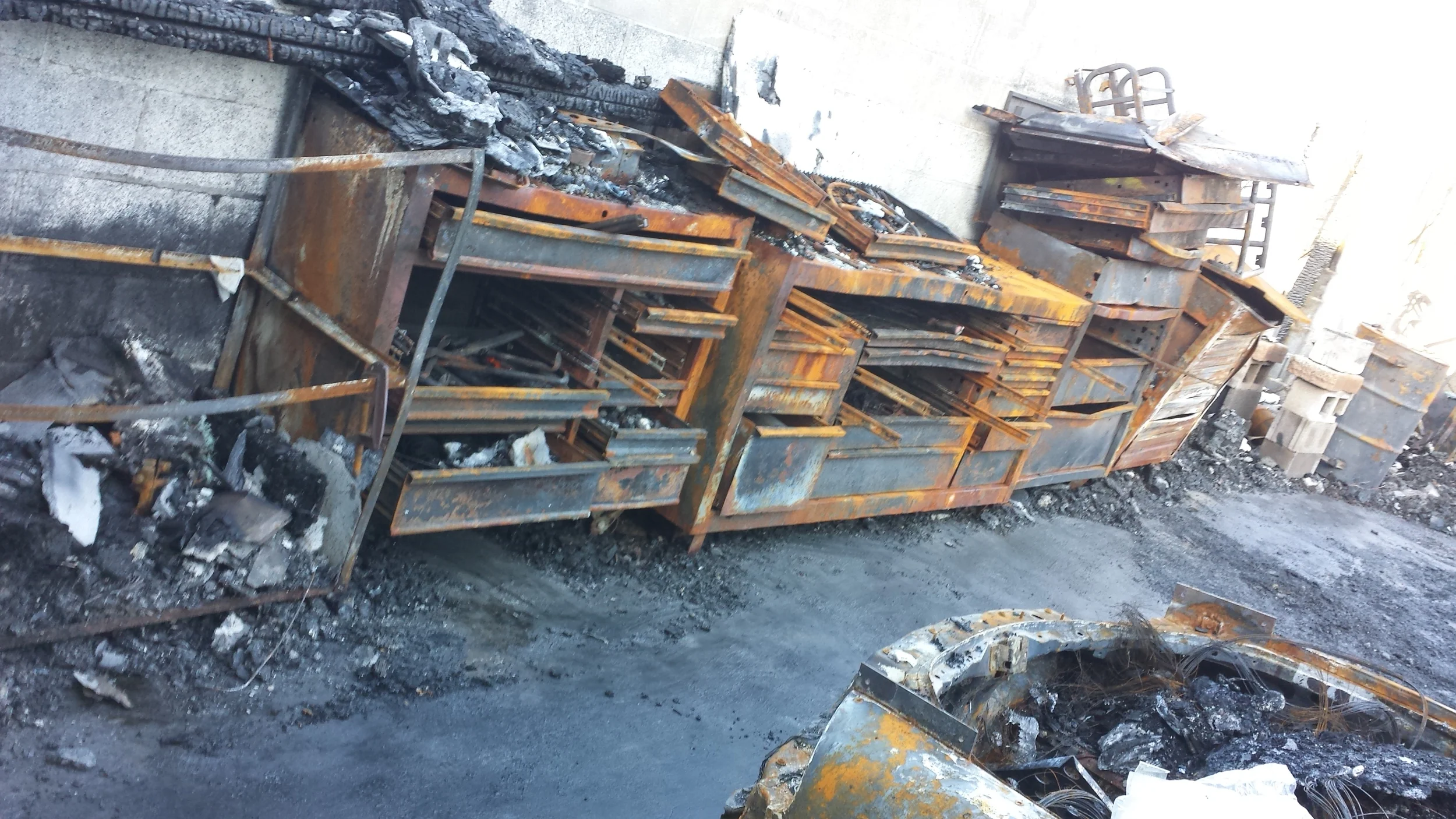 What some of you may not have known is there was also a mobile office trailer in front of the building which caught fire as well. I assume when the roof caved in and blew out the wall, the backside ignited. It's in pretty rough condition as well but will be tackled much later on.
