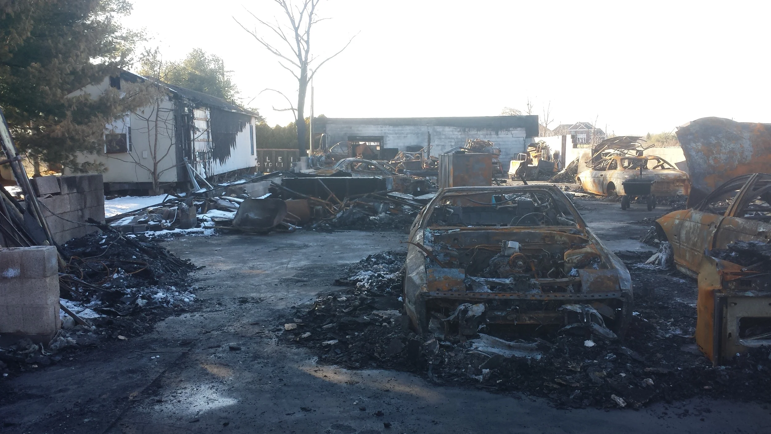 It's funny how life likes to challenge you, in fact, sometimes it will throw a big (~8000sq ft) burning building (with all your life contents) right down in your way (lol). But, it's how you make your own path through it all. Today (Day 2) I continued that journey. Both the scrap metal and demolition dumpster arrived and began to make my own path. Today's objective was to tear apart most of the roof and clear way for the skid steer to come in tomorrow evening. Shoveling got old so we'll leave it to the heavy equipment. It really brings up the morale being able to see the concrete floors. Unfortunately there are tons of damaged areas, anywhere where gas had leaked cracked the floors like crazy, and wherever there was plastic fused itself to the floor. What a bag of dicks. Tomorrow we'll discard the rest of the roof and I'll learn how to operate some big boy toys.